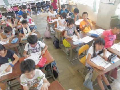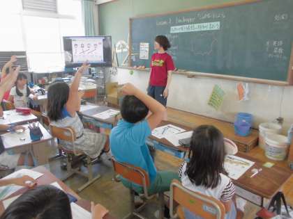 子ども達ははじめに英語での気持ちや様子の言い方を知りました。その言い方を使ってゲームをしたり,歌を歌ったりしました。