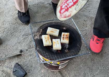 焼けたおもちは「おいしい!」とみんな大満足でした。