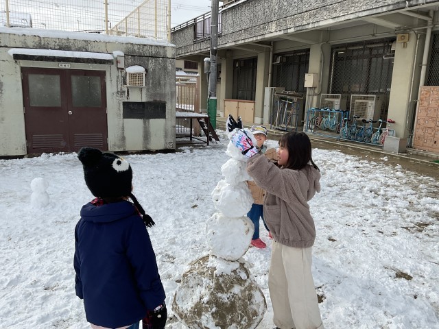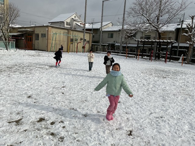 今日、子どもたちが登校すると、運動場は雪で真っ白になっていました。せっかくなので少しだけみんなで雪遊びをしました。たくさんの雪に子どもたちも大喜びでした。