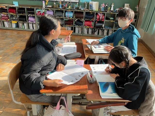 自分たちの疑問を、グループで読み解きながら学習を進めています。