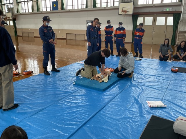 今日の放課後は下鴨消防分団と左京消防署の方々にお越しいただき、救急救命講習会を行いました。