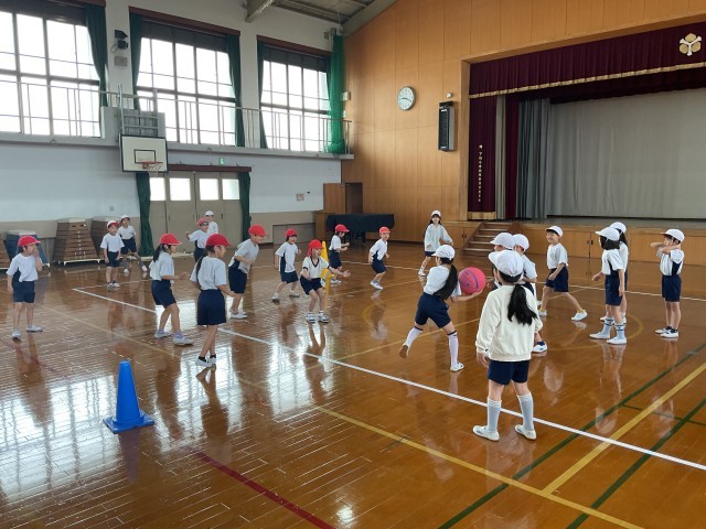 体育では、体育ほぐしの活動しました。体を上手に動かしながら走ったり、ボールを使った遊びなどをしました。
