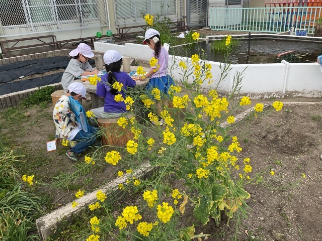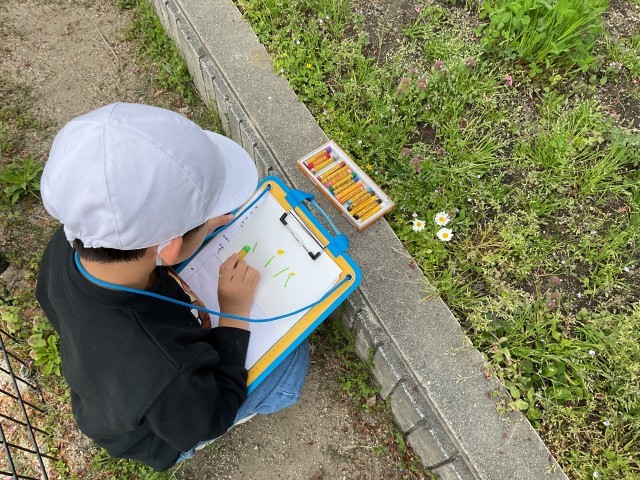 図画工作の学習で、学校にある「春」を見つけて、絵に表しました。花や虫など子どもたち一人一人違った「春」が見られました!
