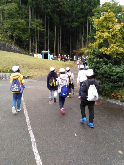 スコアオリエンテーリングに出発します。曇り空を吹き飛ばす勢いで,「エイエイオー」の掛け声と共に出発です。