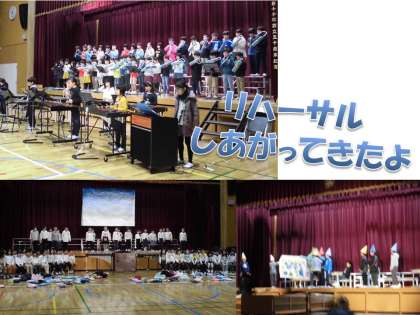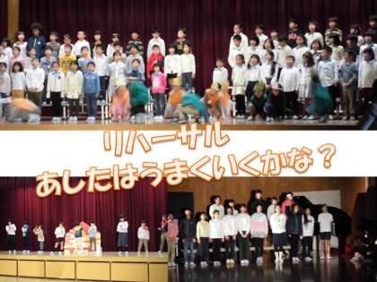 「リハーサルは練習ではなくて,本番に続く舞台です。」と担任の先生のお話に「うんうん。」とうなずく子ども達。気をひきしめて,舞台に上がりました。