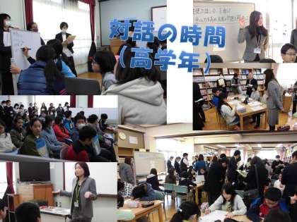 対話の時間の公開授業では,対話を通して,自らの考えを振り返ったり,さらに課題について探究していきたいという思いを育てたりしています。