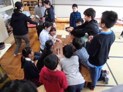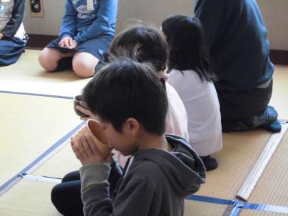 地域の女性会の方々にお世話になり,お香のいい香りの中,お作法を教えていただきお茶会を楽しみました。今までにお茶の経験がある子も,初めての子もとても喜んでいました。