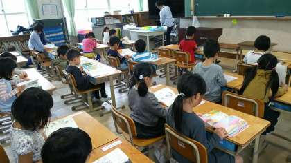 学校生活のペースをつかんできた1年生。朝の読書のときや授業時間,休み時間とそれぞれでどのように過ごしたらいいのか見通しをもつことができるようになりました。それに伴って,笑顔も増えてきて,とってもいい雰囲気です。