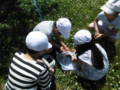 学校の花壇や公園に「小さな なかまたち」を探しにいきました。