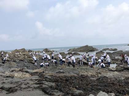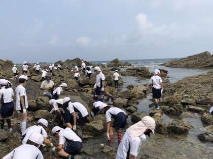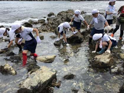 岩場をじっくり見ていて,生き物と触れ合っている中,