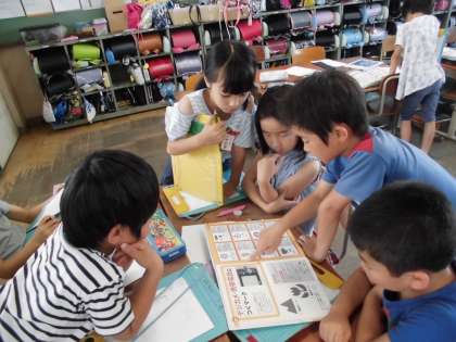 学校にある記号を見つけたり本で調べたりしました。