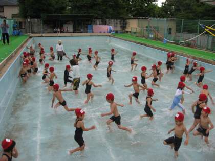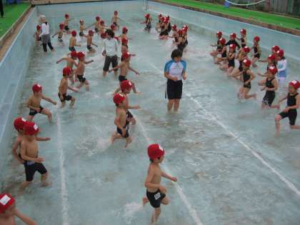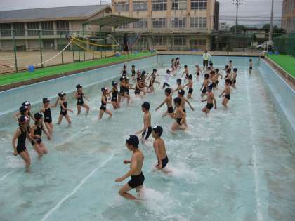 16日から今年度の水泳学習を開始しました。今週は20〜30センチぐらいの低水位で昨日は2年生,今日は1年生が入りました。特に1年生は初めての学校プールにおおはしゃぎでした。来週からは全学年へと広げていきます。