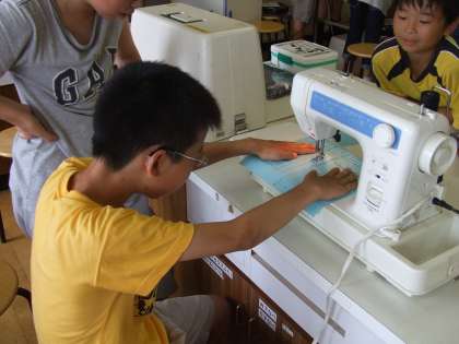 そして,いよいよ上糸と下糸を通してぬう段階に入りました。しかし,下糸を出すことに苦戦している様子が多く見られました。