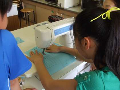 家庭科の学習で「ミシン」の使い方を学習しました。子どもたちは,ミシンを使ってエプロンを製作します。