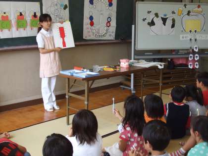 17日(金)に,歯みがきの巡回指導がありました。歯科衛生士さんに来ていただいて,虫歯ができるまでや正しい歯みがきの仕方について教えていただきました。