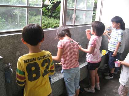 6月22日〜26日まで,歯みがき週間でした。給食の後,歯みがきをしました。2・3・5年生は,カラーテストを実施して,みがき残しのある部分を自分の目で確かめました。赤く染まったところは,よく磨けていないところです。これから,気をつけてみがけたらいいですね。