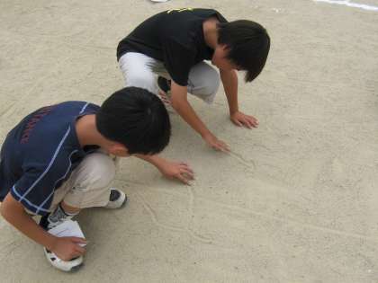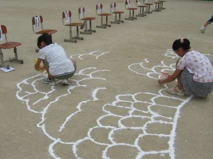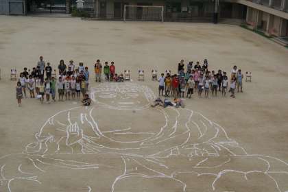 奈良の大仏を運動場に描き,その大きさを感じる学習をしました。
