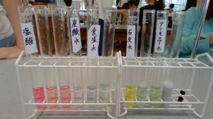 リトマス紙やムラサキキャベツ液を使って,酸性・中性・アルカリ性を判別したり,