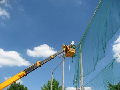 教育委員会にお願いして,運動場南側に,今までの高さの倍(10メートル)の防球ネットを設置してもらいました。これでボールが外に飛び出すこともほぼなくなるのではないかと思っています。