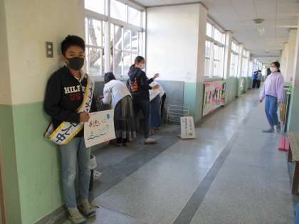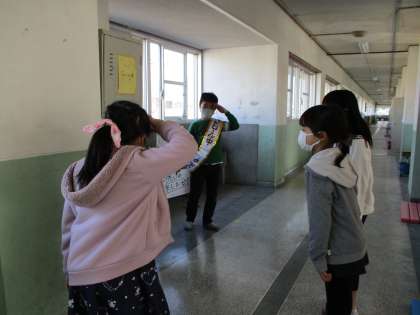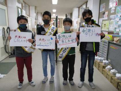 中間休みと昼休みに,手洗いを呼びかけるためのパトロールを実施中です。