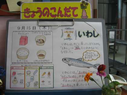 いわしには(まいわし)(うるめいわし)(かたくちいわし)などの種類があり、今日のいわしは(まいわし)を使っています。いわしはすぐに弱ってしまうことから「弱し」−「鰯(いわし)」といわれるようになりました。また、いわしには、イコサペンタエン酸で血流を改善する働きがあり,ドコサヘキサエン酸で神経組織の発育を促す働きもあります。老化予防,骨や歯を丈夫にするミネラルを含んでいますので、「弱し」を食べて「強し」になれるのではないのでしょうか。