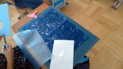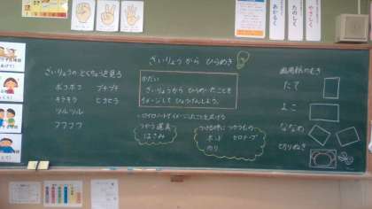 子どもたちは,材料とにらめっこをして,とてもかわいい作品が出来上がりました。