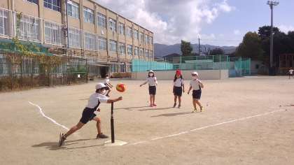 ハンドベースボールの学習をしています。スポーツ参観での種目でもあります。学習の目指すゴールの姿も話し合って決めることができました。課題に向かって,「大丈夫!いけるよ。」と温かい声かけをしながらプレーする姿が光っています。