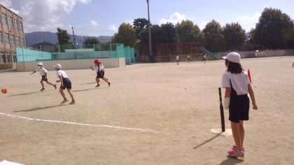 試合が終わるごとに,チームで振り返りの時間を取り,「次はこうしよう。」「…のときは,」と話し合いながら進めています。気持ちのよい秋空のもと,子ども達の全力プレ—がとても素敵です。