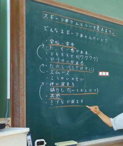 「安心・安全に」「仲が深まるように」などと,よりよいスポーツ参観の取組になるようにたくさんの意見を出して交流しました。