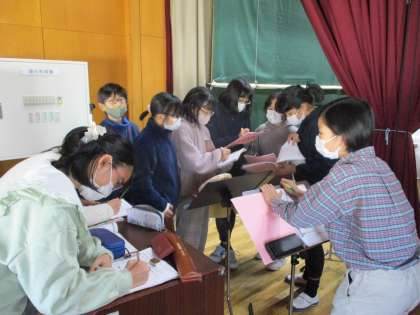 音楽の学習で,グループでの合奏に取り組みました。これまでなかなかみんなで楽器を演奏したりすることができない状況が続いていましたが,グループでどの楽器を選ぶか,どのパートを分担するかなどを話し合いながら,練習に取り組んできました。