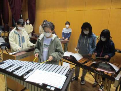 発表本番では,仲間と息を合わせて,楽器ごとの音量やリズムに気をつけながら,様々な楽器の音色の重なりを味わうことができました。