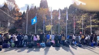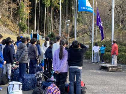 玄関前広場にて退所式を行いました。楽しかった思い出だけを残して,山の家を後にします。