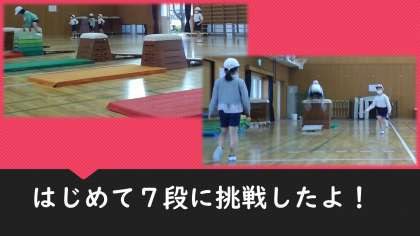 はじめて挑戦する7段に「自信がなかったけれど,跳んでみたらできた!」と自信をもつことができました。