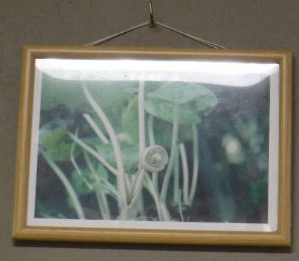 先日,葵小学校の元校長先生からフタバアオイの花の写真を寄贈いただきました。校歌にも登場するフタバアオイの花をご覧になられたことはございますでしょうか?葵小学校のシンボルでもあるフタバアオイの花を撮影した貴重な写真です。職員室前の掲示板に飾らせていただきましたので,ご紹介させていただきます。