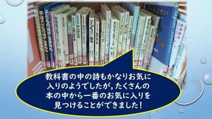 教科書の詩を思う存分楽しんだ後は,詩の本をたくさん読みました。