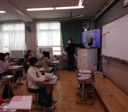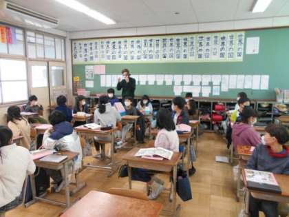 今日はALTの先生と一緒に外国語の学習を進めました。まず初めに,ALTの先生の冬休みについて聞きました。出身国,イギリスでのクリスマスの過ごし方も興味をもって聞いていました。