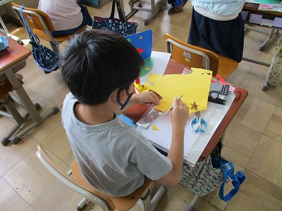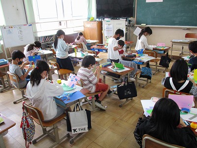 はさみを使い,細かい部分までこだわっていたり,色の組み合わせを工夫したりして,去年よりもレベルアップした作品がたくさんあります。