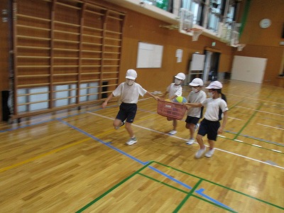 パスリレーでは,チームで協力をしながら,練習できました。