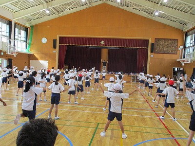 来月のスポーツフェスタに向けて,学年での練習を行いました。