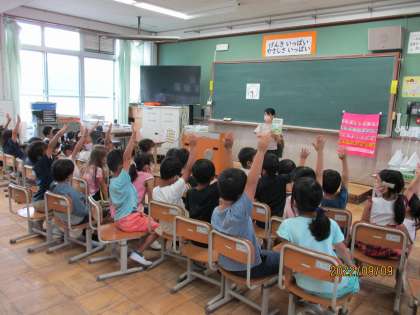 今朝は、図書ボランティアさんによる読み聞かせがありました。今日の絵本は、「11ぴきのねこ どろんこ」でした。11ぴきのねこシリーズは、子どもたちも大好きなお話なので、目をキラキラさせてお話の世界に引き込まれていました。ありがとうございました。