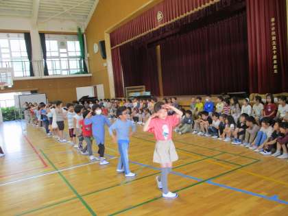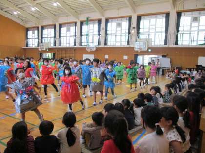 6年生のお兄さんお姉さんに手をつないでもらい、拍手に包まれて入場しました。2年生・3年生は素敵なダンスを見せてくれました。4年生は、学校生活のあるあるを教えてくれました。5年生はかっこいいソーラン節の踊りを見せてくれました。6年生は、これから困ったことがあれば、スーパー6年生が現れて助けてくれることを教えてくれました。どの学年の発表も感動と楽しさ・おもしろさがあり、あっという間に2時間が過ぎてしまいました。1年生もこれからがんばります。