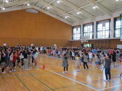 上級生の発表を見たお礼に、1年生も「セブンステップス」と「チェッチェッコリ」の歌とダンスをプレゼントしました。上級生も一緒に踊ってくれて、全校児童で盛り上がりました。
