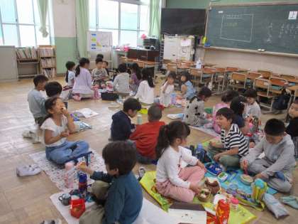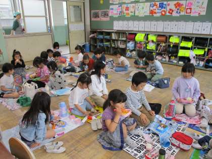 今日は、遠足の予定でしたが、あいにくの雨となり延期となってしまいました。遠足に行けない事は残念でしたが、教室でレジャーシートを広げて、みんなで一緒に食べられたことが子どもたちはとても嬉しそうでした。「○○大好きなんだ。」「デザートが入ってる。」とにこにこ笑顔で食べていました。お弁当は、子どもたちを笑顔にする魔法ですね。