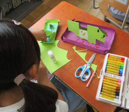 図工では紙をおって立てた形からいろいろなものを作ることができました。