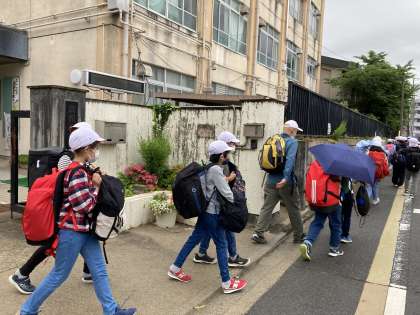 5年生が2泊3日の宿泊学習に出発しました。出発式は体育館で行ったのですが、いざ出発する時には雨もあがり、幸先のいいスタートとなりました!子どもたちが願いをこめて作った「てるてる坊主」の効果でしょうか?