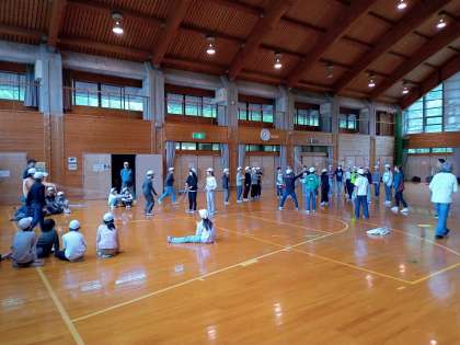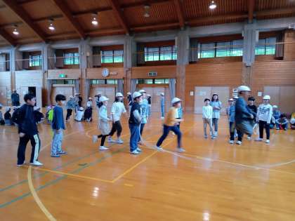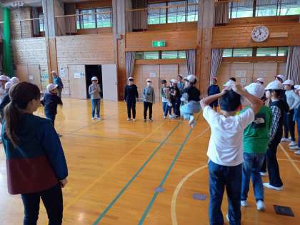 残念ながら雨で冒険の森は中止になりましたが、プレイホールでクラスの結束力を高める大縄大会が始まりました。