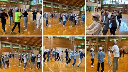 大縄大会のあとは、キャンプファイヤーのダンスの練習をしました。