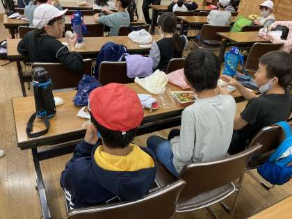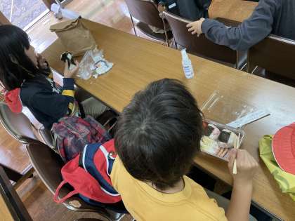 昼食タイムです。お家の方が作ってくださったお弁当をいただき、昼からのエネルギーを充填しています。おいしいお弁当ごちそうさまでした♪