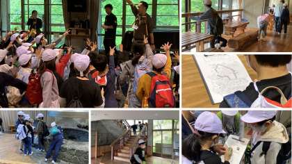 昼からの活動は、館内ウォークラリーです。グループに分かれて、館内のあらゆる場所に隠された10枚の札を地図を頼りに探します。その札に書かれた文字を集め、最後に文字をならびかえると、1つの言葉があらわれるという謎解きゲームのような活動です♪