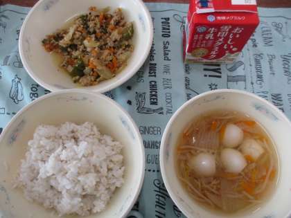カレー粉の風味の中にバジルの香りを感じる新しい献立でした。